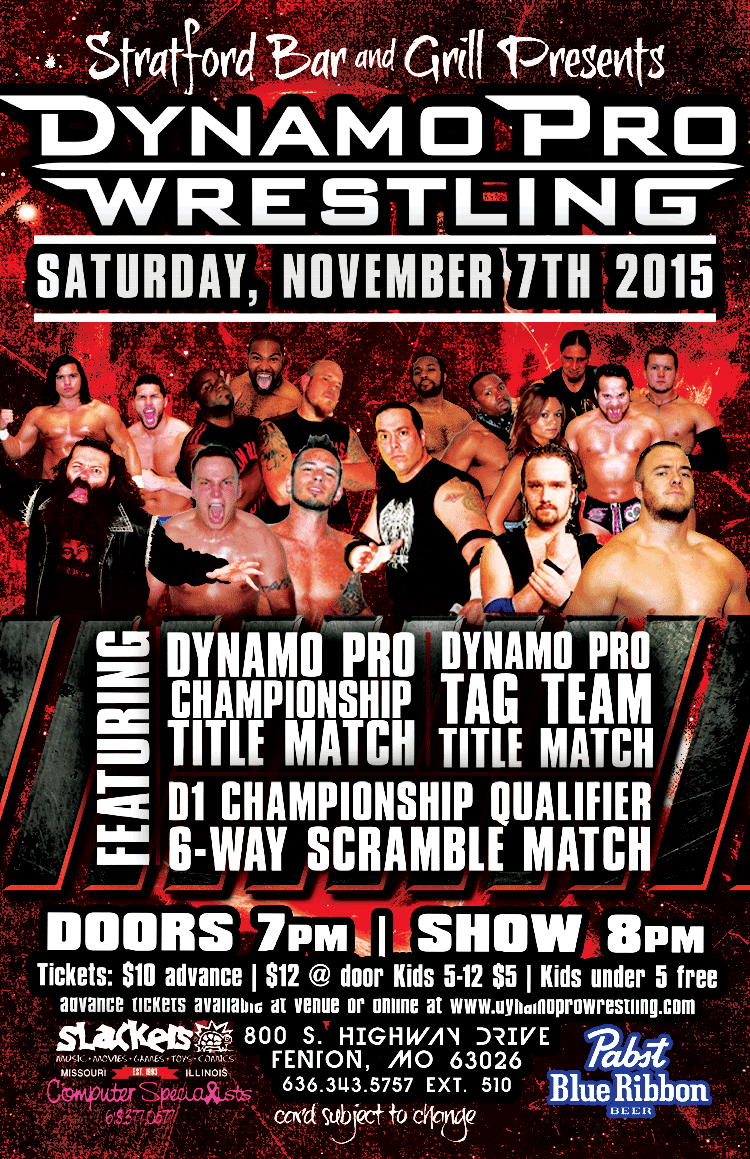 Ricky Cruz is the Dynamo Pro and MWR Missouri champ. Both belts are on the line when Dynamo Pro Wrestling returns to the Stratford Bar & Grill on November 7.