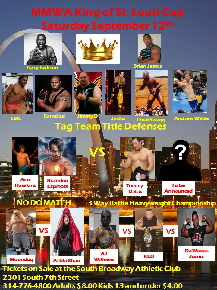The South Broadway Athletic Club presents a loaded card September 12. The 5th annual King of St. Louis Cup (formerly Cable Cup) will be decided in a one-night tournament. After the first round, half of the field will compete in a final four-way match.