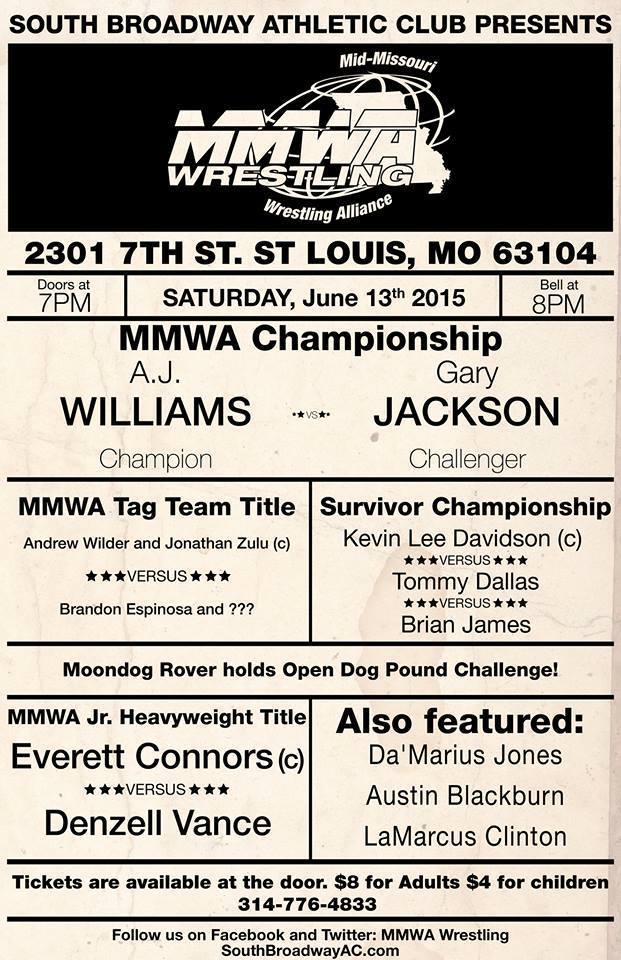 In the main event, the only two-time SICW champion Flash Flanagan defends for the first time against Daniel Eads. “The Man of Tomorrow” hasn’t wrestled for the title in 19 months. Also, the Bruiser Brody Cup will be presented to the winner of a battle royal.