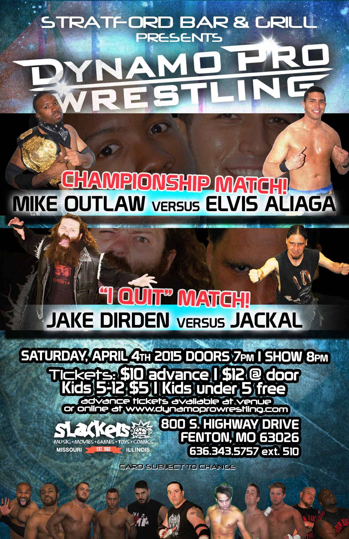 Bell at 8. Tickets are $10. To purchase advance tickets, visit http://www.dynamoprowrestling.com or contact the Wood River Knights of Columbus at (618) 254-2211.