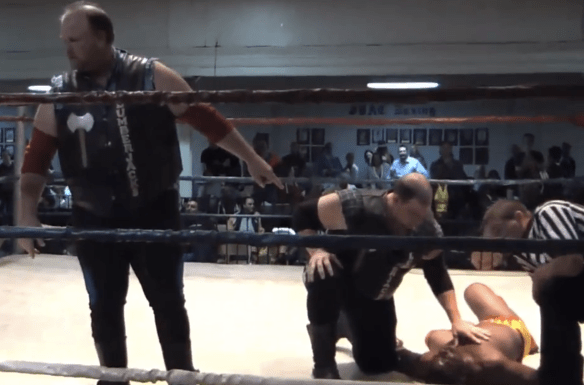 It happened last night at South Broadway in a lumberjack match. After an argument between Ricky Cruz and Dave Vaughn broke into the ring and the match, Vaughn speared the daylights out of Jackson.