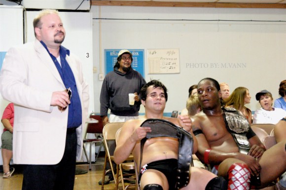Controversy abounded October 9th at South Broadway in the first match.  Johnny Courageous was advertised and announced as defending his Jr. Heavyweight title against Brandon Espinosa.