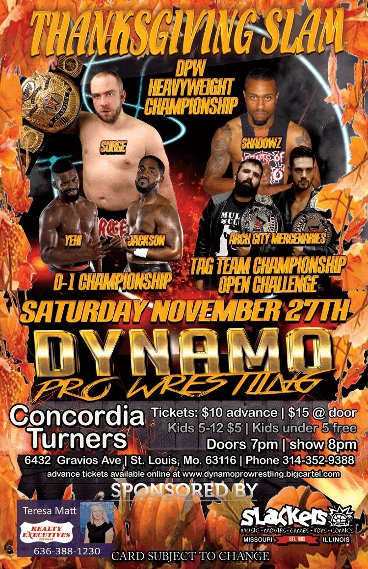 Dynamo Pro Tag Team Championship: Jackal & Tony Esteem (c) def. Eli Rossi & ATM; Jackal pinned ATM with an inverted double underhook facebuster