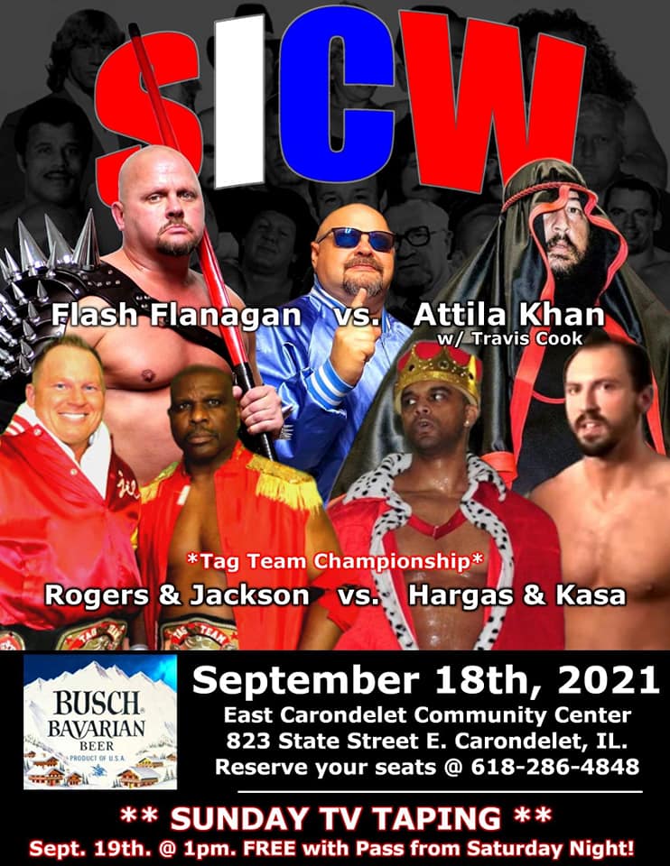 SICW Tag Team Championship: King Christopher Hargas & Ken Kasa def. Gary Jackson (c) in a handicap match to win the title; Hargas pinned Jackson from a side slam/second-rope knee drop combo (Gil Rogers was absent, so Jackson agreed to defend on his own) – 8:27