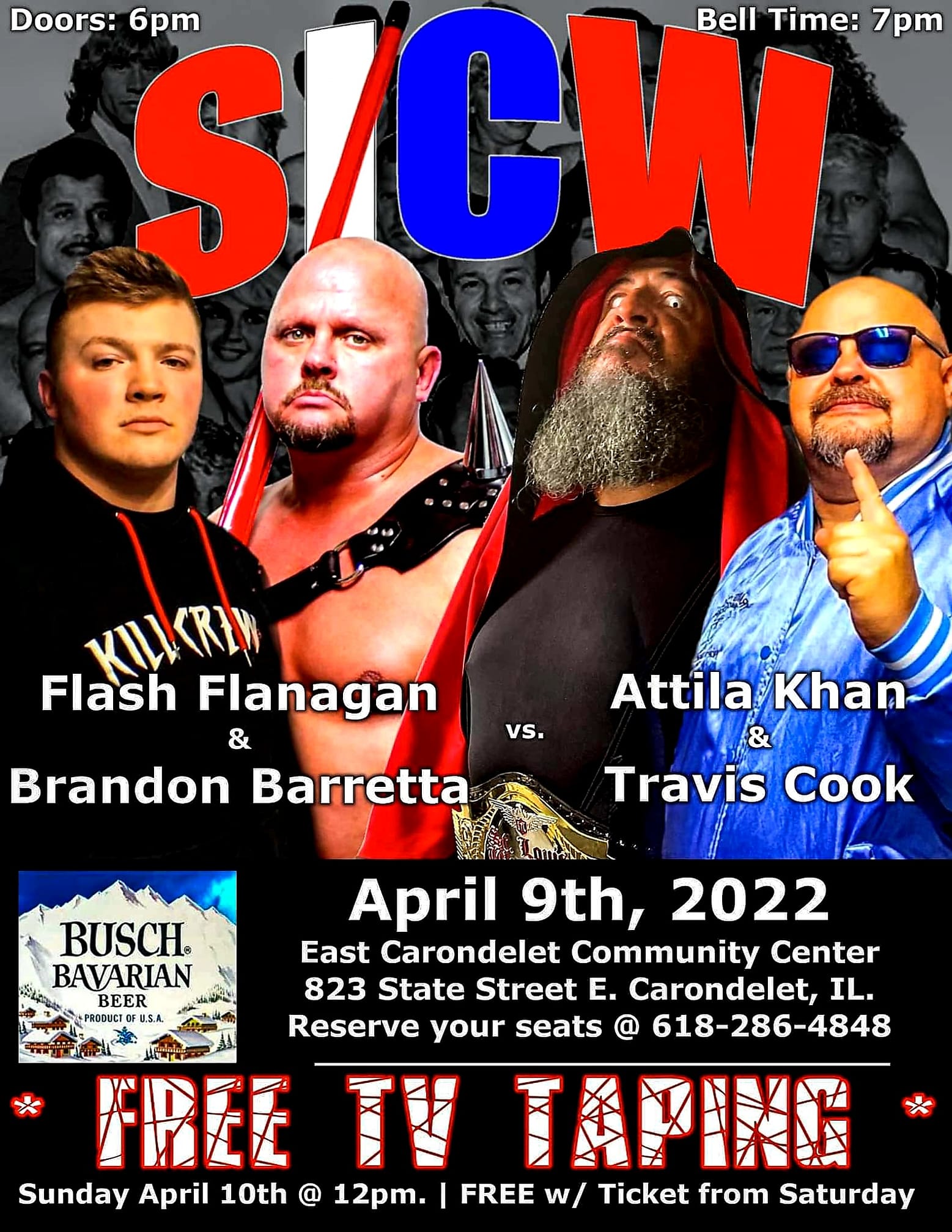 Flash Flanagan & The Big Texan def. Kowalski & Mauler McDarby; Flanagan pinned McDarby after hitting him with his kendo stick behind the referee’s back – 7:31