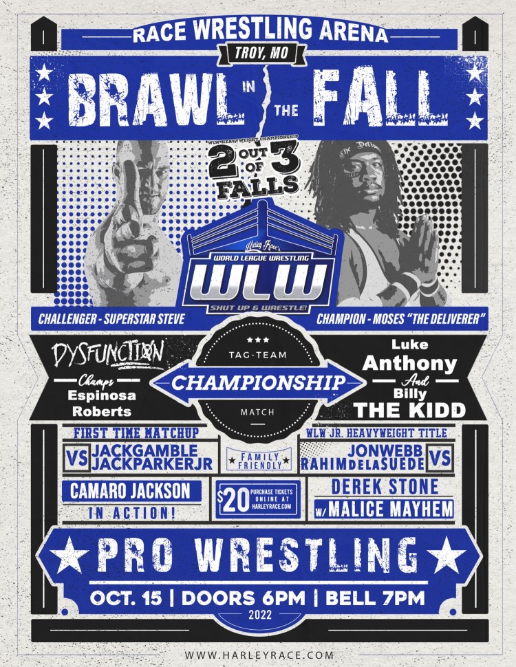 WLW Tag Team Championship: Brandon Espinosa & Kyle Roberts (c) def. Billy Jarrell & Luke Anthony; Espinosa pinned Jarrell after landing on top of Jarrell from Jarrell’s outside-in vertical suplex with Roberts holding Jarrell’s foot – 15:26