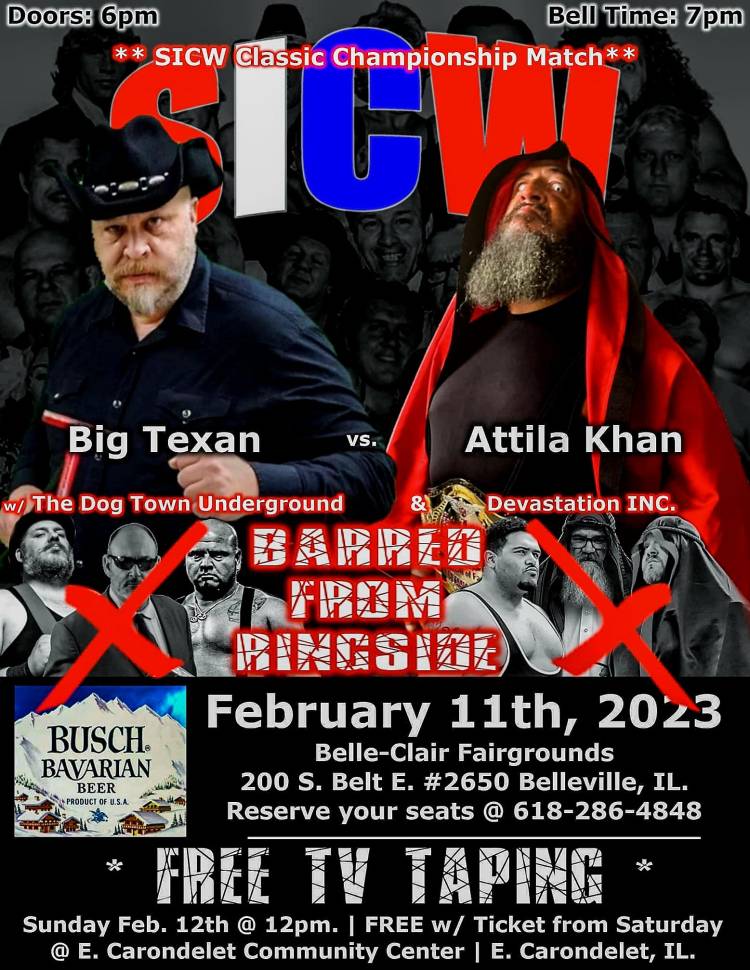 SICW Classic Wrestling Championship: Attila Khan (c) def. The Big Texan by disqualification; Texan got caught using Khan’s own fork – 8:08