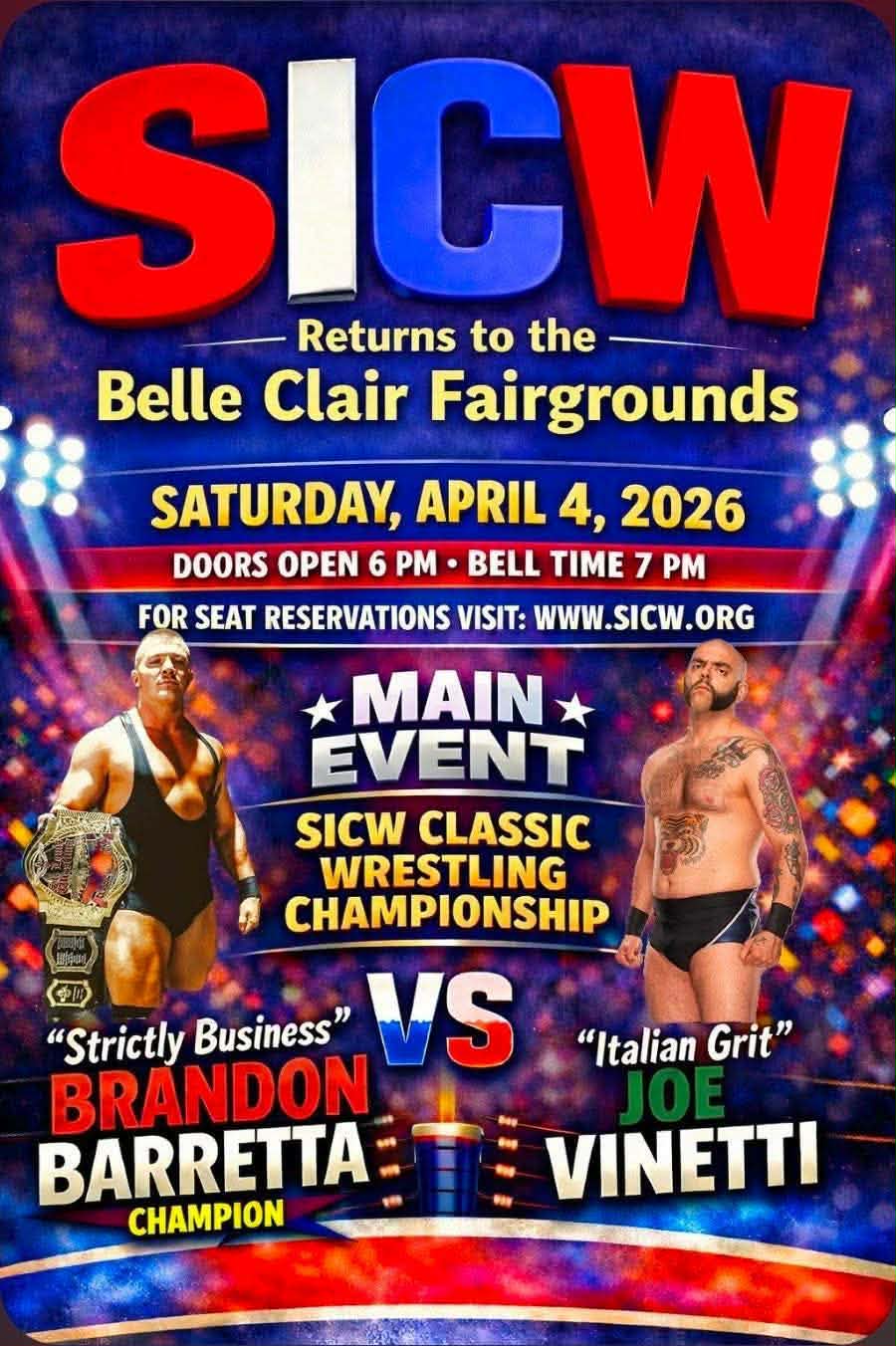 SICW Classic Wrestling Championship: Brandon Barretta (c) pinned Joe Vinetti with a headlock driver – 16:18