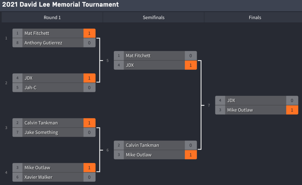 The one-night tournament at the second WrestleMax STL card was the second annual David Lee Memorial Tournament. Although Outlaw guaranteed his title recognition on this date, the company officially withheld his “champion” status until the belt presentation in Summer 2021.